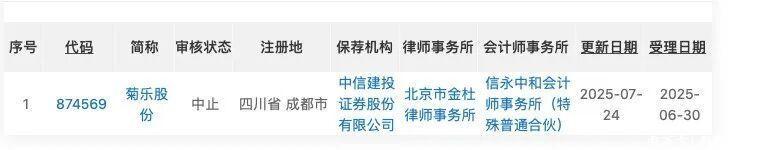 10月16日,南都湾财社记者从北交所官网获悉,菊乐股份北交所IPO中止。对于中止的原因,北交所官网显示“因财务报告到期补充审计事项申请中止审核”。